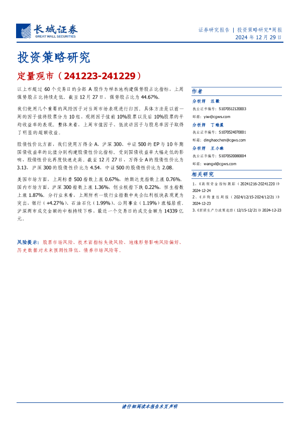 【长城证券】【20241229】投资策略研究:定量观市-13页