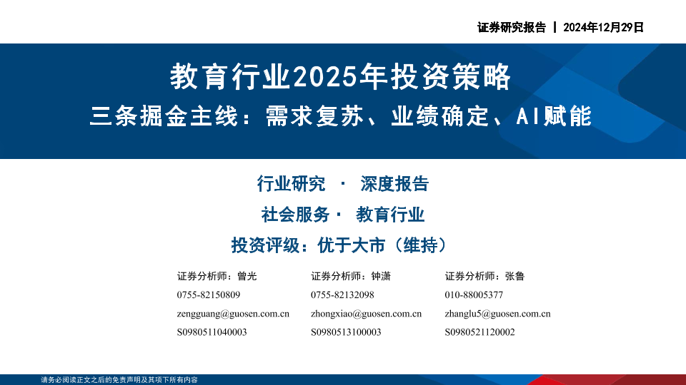 【国信证券】【20241229】教育行业2025年投资策略:三条掘金主线,需求复苏、业绩确定、AI赋能-45页