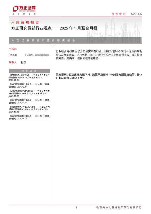 【方正证券】【20241230】方正研究最新行业观点:2025年1月联合月报-22页
