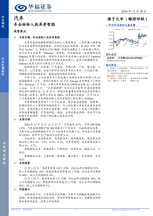 【华福证券】【20241230】汽车行业定期报告:车企纷纷入局具身智能-12页
