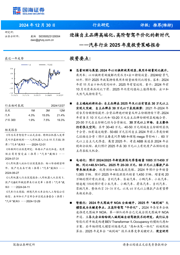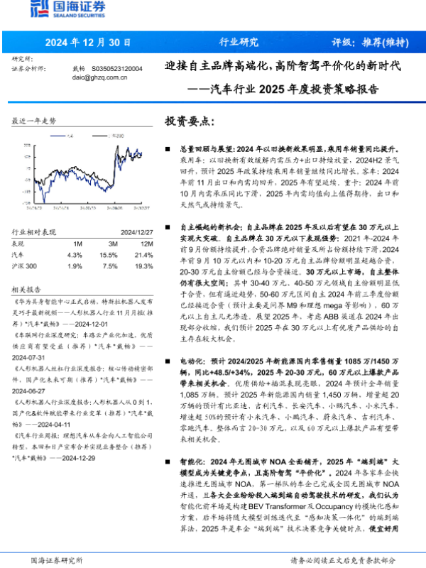 【国海证券】【20241230】汽车行业2025年度投资策略报告:迎接自主品牌高端化,高阶智驾平价化的新时代-75页