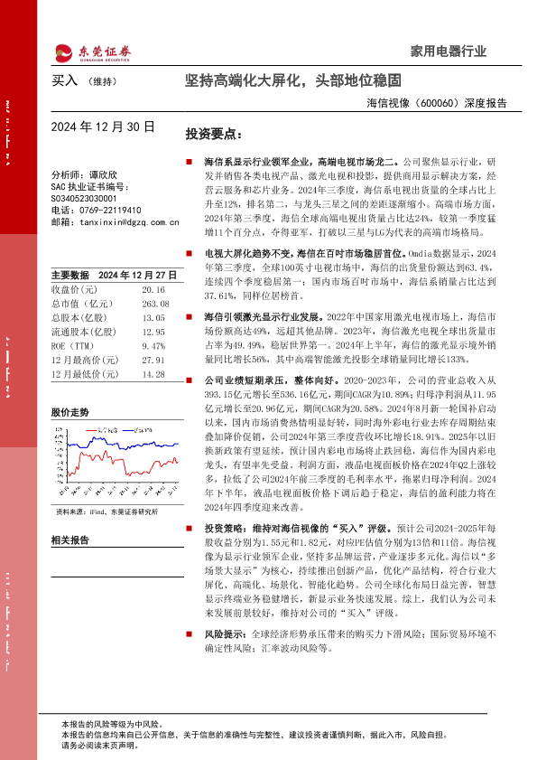 【东莞证券】【20241230】海信视像(600060)深度报告:坚持高端化大屏化,头部地位稳固-24页