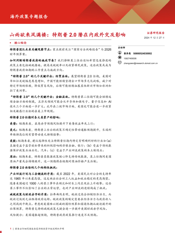 【西部证券】【20241227】海外政策专题报告:山雨欲来风满楼,特朗普2.0潜在内政外交及影响-24页