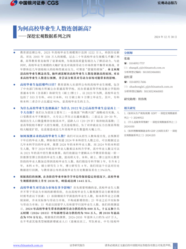 【银河证券】【20241230】深挖宏观数据系列之四:为何高校毕业生人数连创新高?-15页