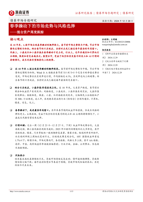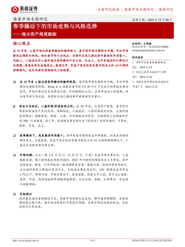 【浙商证券】【20241229】混合资产周度跟踪:春季躁动下的市场走势与风格选择-15页