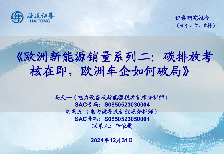 【海通证券】【20241231】欧洲新能源销量系列二:碳排放考核在即,欧洲车企如何破局-35页