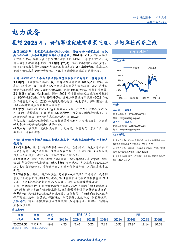 【国盛证券】【20241231】电力设备行业策略:展望2025年,储能赛道优选需求景气度、业绩弹性两条主线-19页
