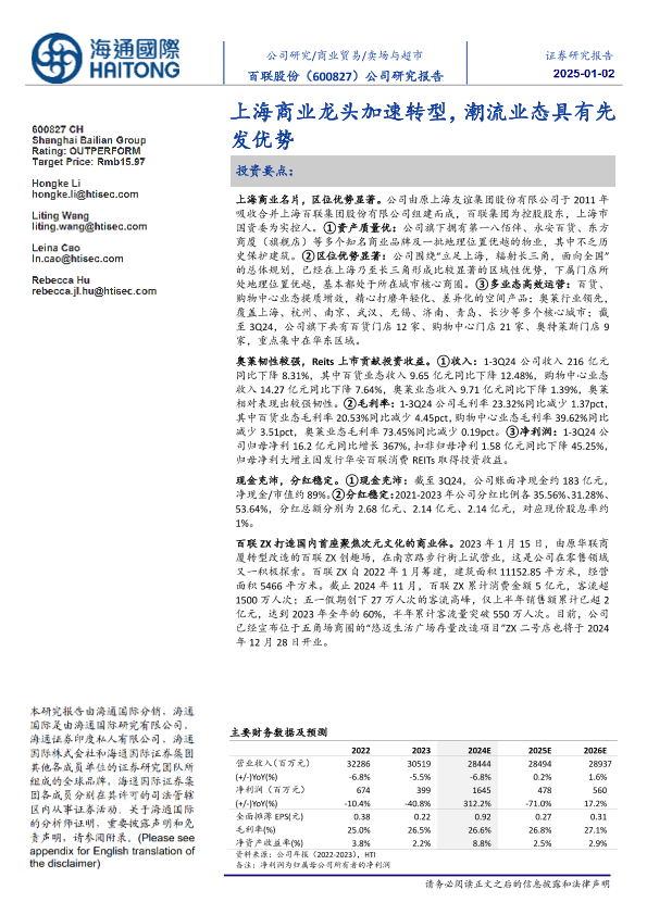 【海通国际】【20250102】百联股份(600827)上海商业龙头加速转型,潮流业态具有先发优势-15页