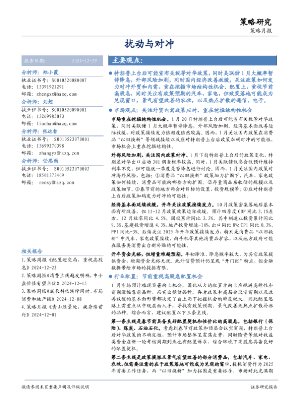 【华安证券】【20241229】策略月报:扰动与对冲-14页
