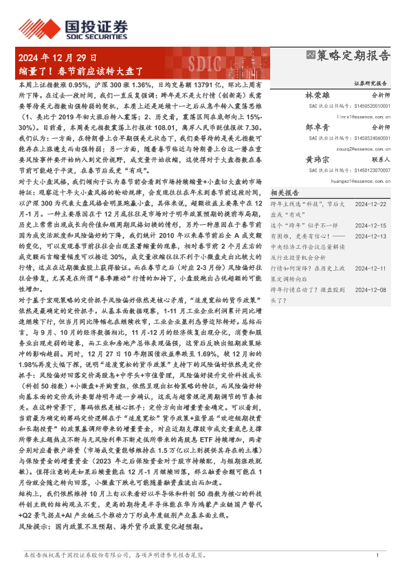 【国投证券】【20241229】缩量了!春节前应该转大盘了-27页