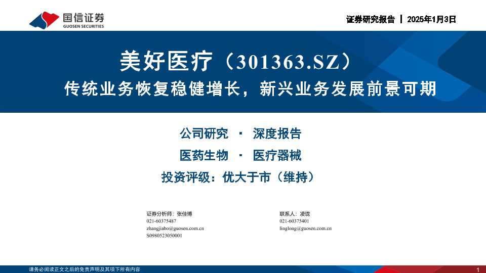 【国信证券】【20250103】美好医疗(301363)传统业务恢复稳健增长,新兴业务发展前景可期-60页
