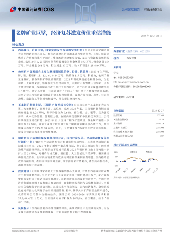 【银河证券】【20241230】西部矿业(601168)老牌矿业巨擘,经济复苏激发价值重估潜能-41页