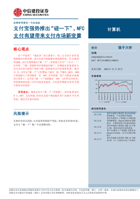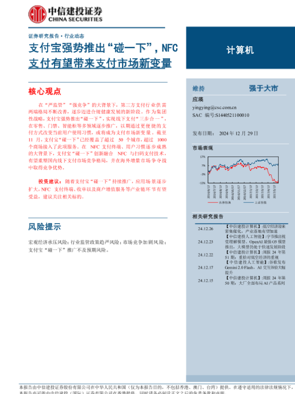 【中信建投证券】【20241229】计算机行业:支付宝强势推出“碰一下”,NFC支付有望带来支付市场新变量-14页