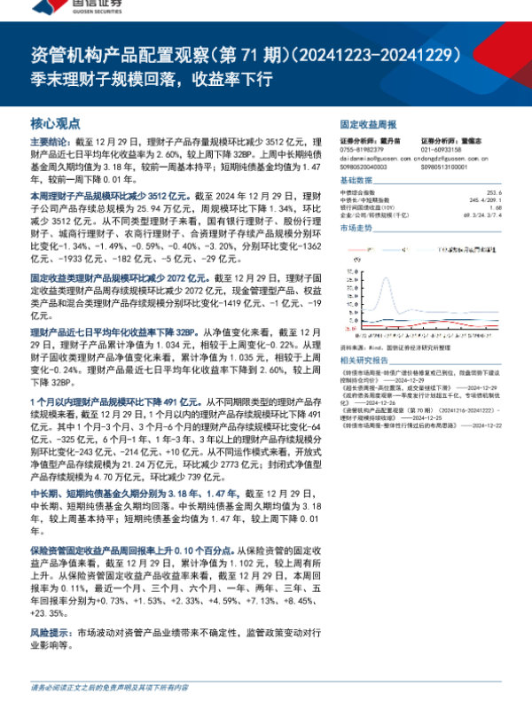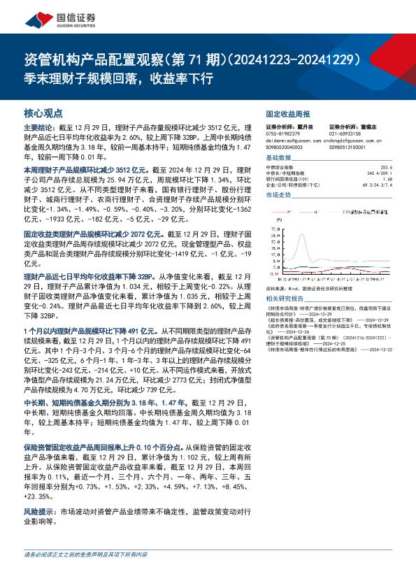 【国信证券】【20241229】资管机构产品配置观察(第71期)(20241223-20241229):季末理财子规模回落,收益率下行-14页