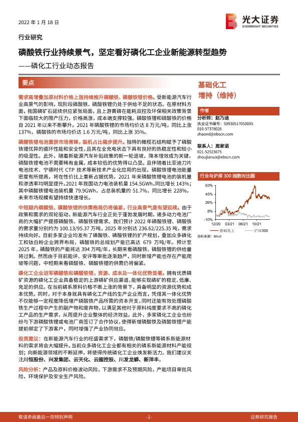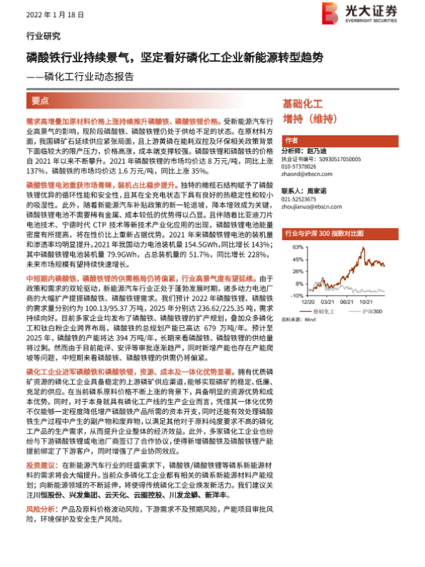 【光大证券】【20220118】磷化工行业动态报告:磷酸铁行业持续景气,坚定看好磷化工企业新能源转型趋势-17页