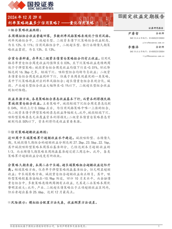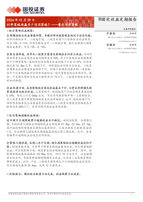 【国投证券】【20241229】量化信用策略:利率策略跑赢多少信用策略?-11页