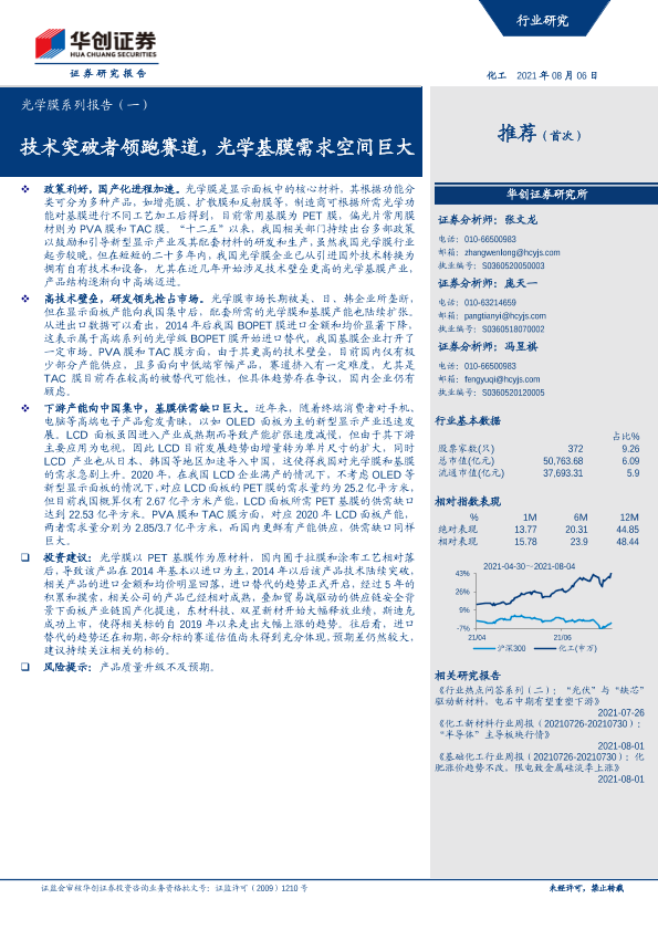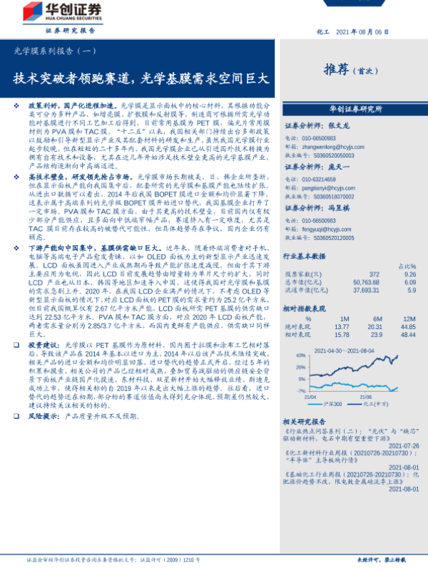 【华创证券】【20210806】化工行业光学膜系列报告(一):技术突破者领跑赛道,光学基膜需求空间巨大-23页