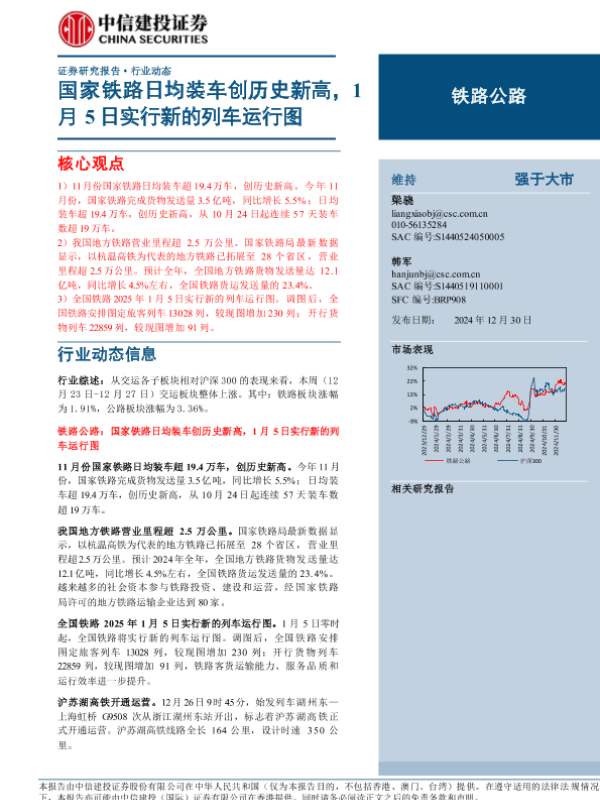 【中信建投证券】【20241230】铁路公路行业:国家铁路日均装车创历史新高,1月5日实行新的列车运行图-12页