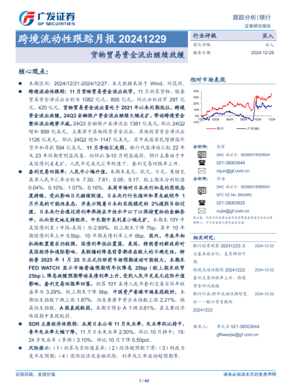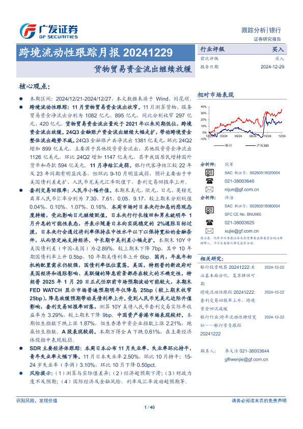 【广发证券】【20241229】银行业跨境流动性跟踪月报:货物贸易资金流出继续放缓-40页