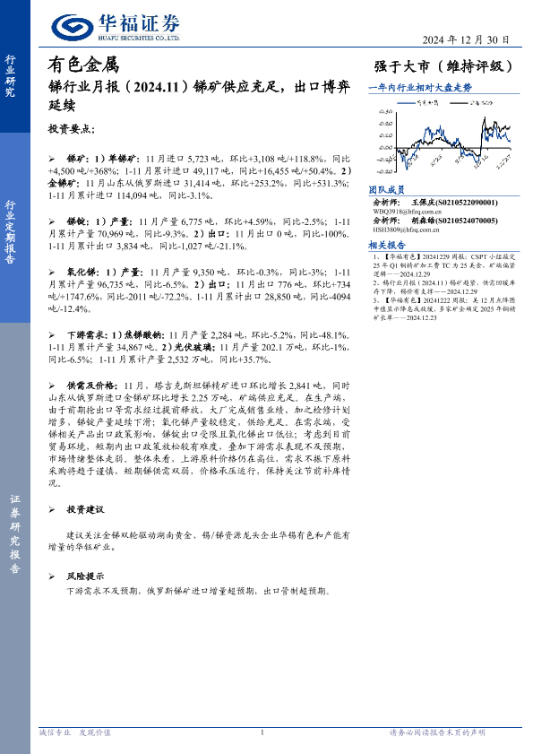 【华福证券】【20241230】锑行业月报(2024.11):锑矿供应充足,出口博弈延续-10页