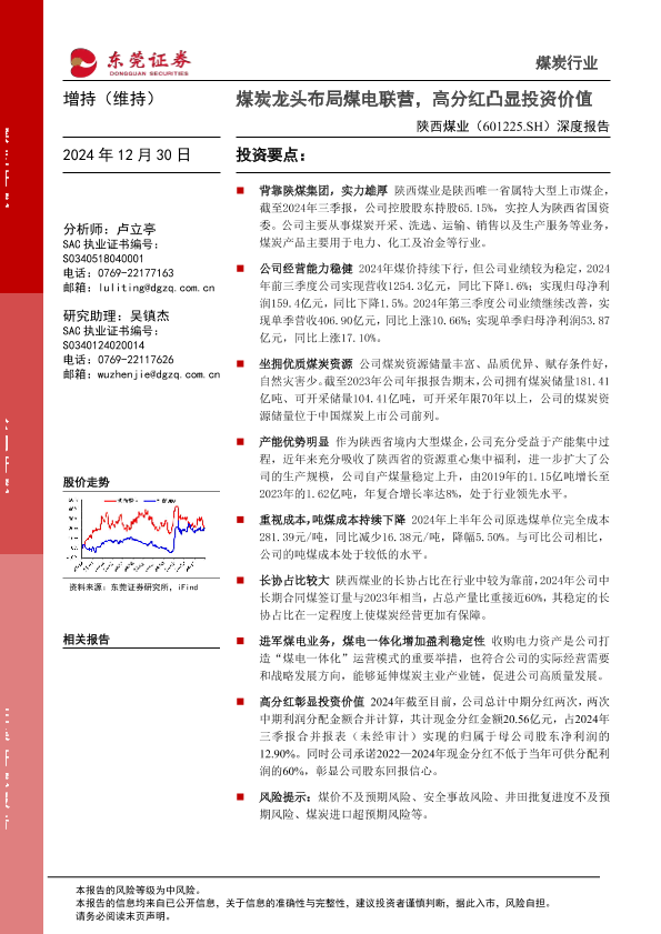 【东莞证券】【20241230】陕西煤业(601225)深度报告:煤炭龙头布局煤电联营,高分红凸显投资价值-24页