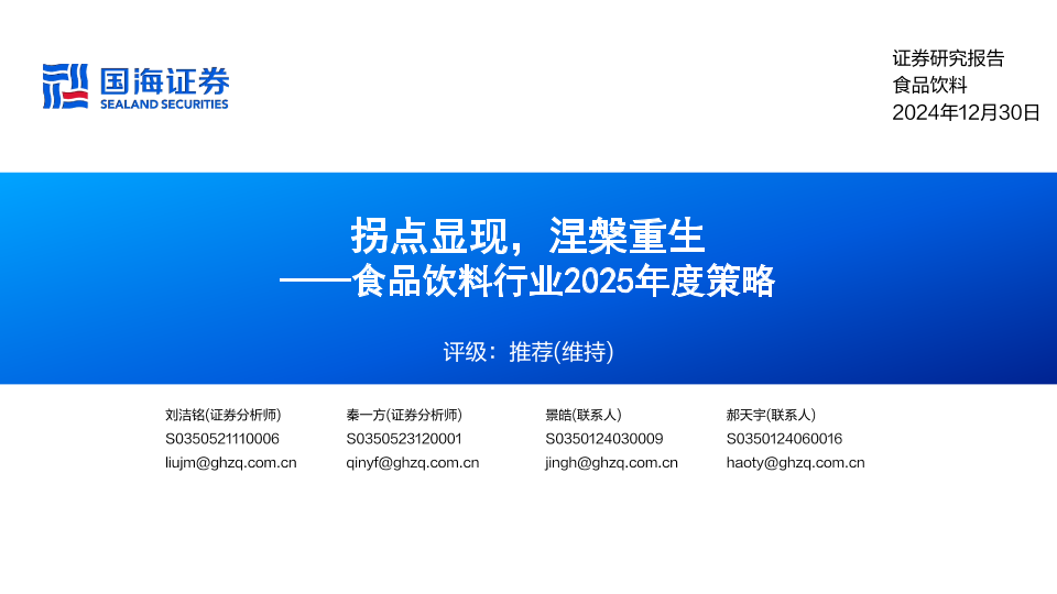 【国海证券】【20241230】食品饮料行业2025年度策略:拐点显现,涅槃重生-50页