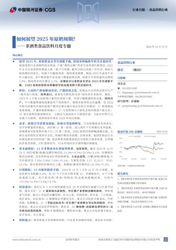 【银河证券】【20241227】食品饮料行业非酒类食品饮料月度专题:如何展望2025年原奶周期?-16页