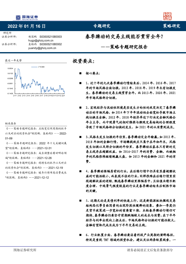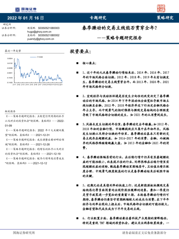 【国海证券】【20220116】策略专题研究报告: 春季躁动的交易主线能否贯穿全年?-27页