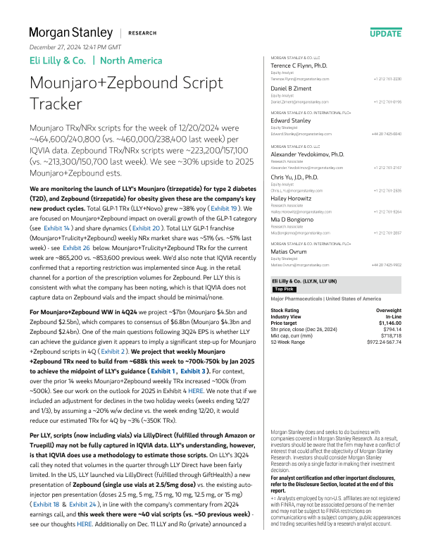 【Morgan Stanley】【202412】Eli Lilly Co. Mounjaro+Zepbound Script Tracker-25页