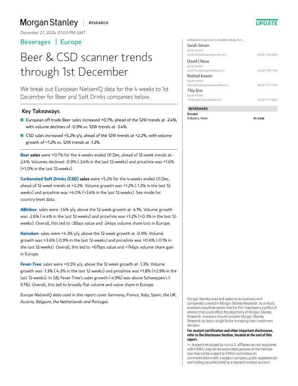 【Morgan Stanley】【20241201】Stanley-Beverages Beer & CSD Scanner Trends through 1st December-19页