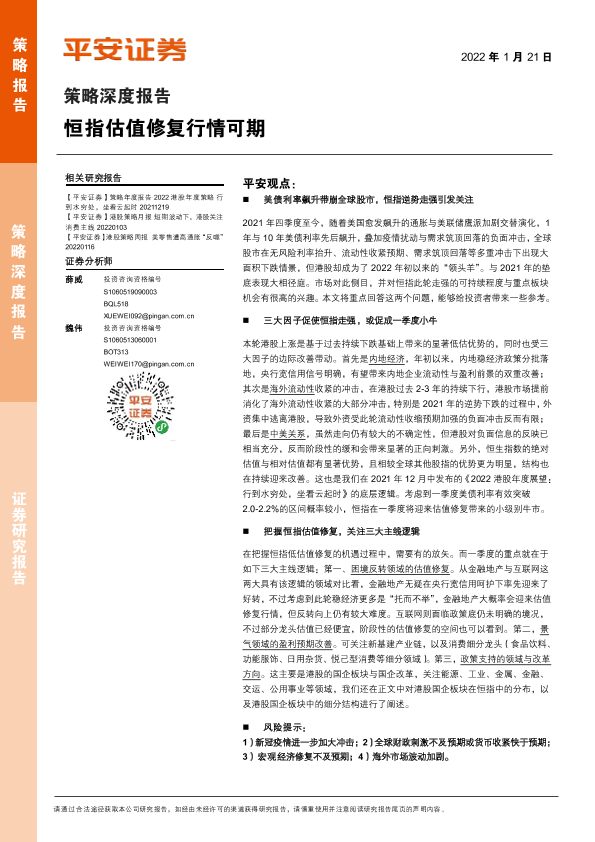 【平安证券】【20220121】策略深度报告:恒指估值修复行情可期-16页