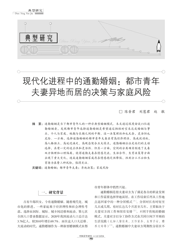 【陈香君】【202412】现代化进程中的通勤婚姻:都市青年夫妻异地而居的决策与家庭风险-9页