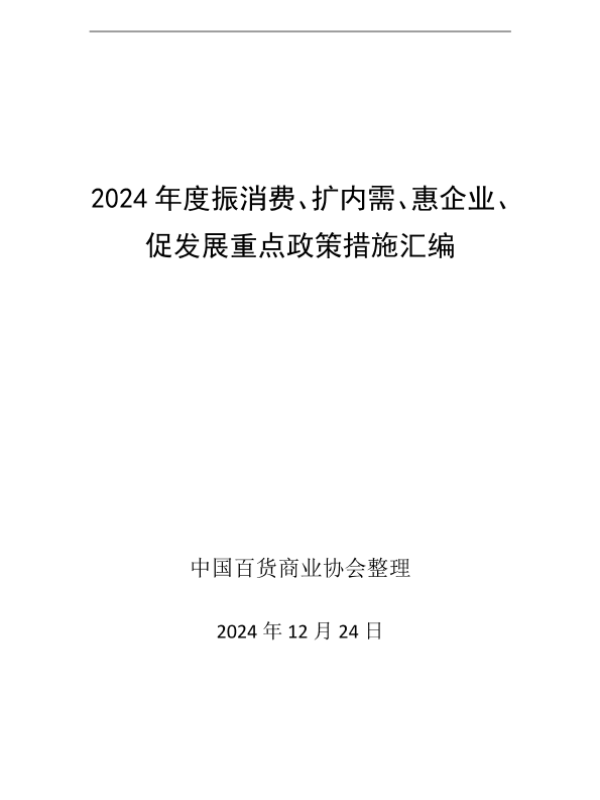 【中国百货商业协会】【20241224】2024年度振消费、扩内需、惠企业、促发展重点政策措施汇编-147页