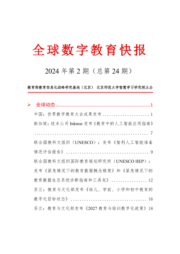 【教育部教育信息化战略研究基地(北京)北京师范大学智慧学习研究院】【202402】全球数字教育快报-21页