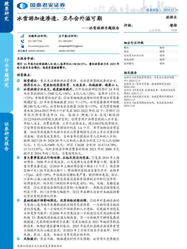 【国泰君安证券】【20241226】冰雪旅游专题报告:冰雪游加速渗透,亚冬会外溢可期-25页