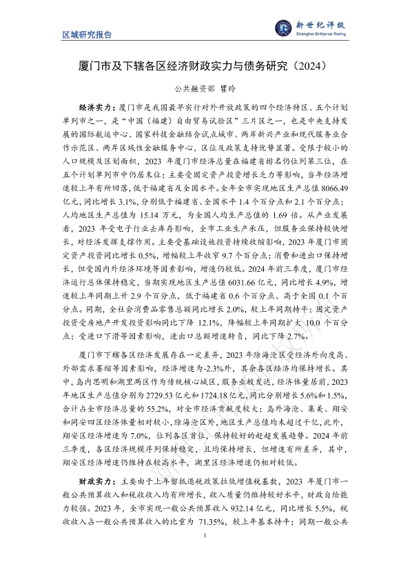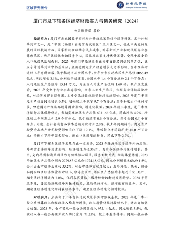 【公共融资部瞿玲】【2024】厦门市及下辖各区经济财政实力与债务研究(2024)-22页