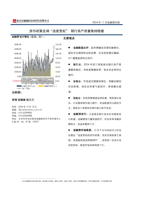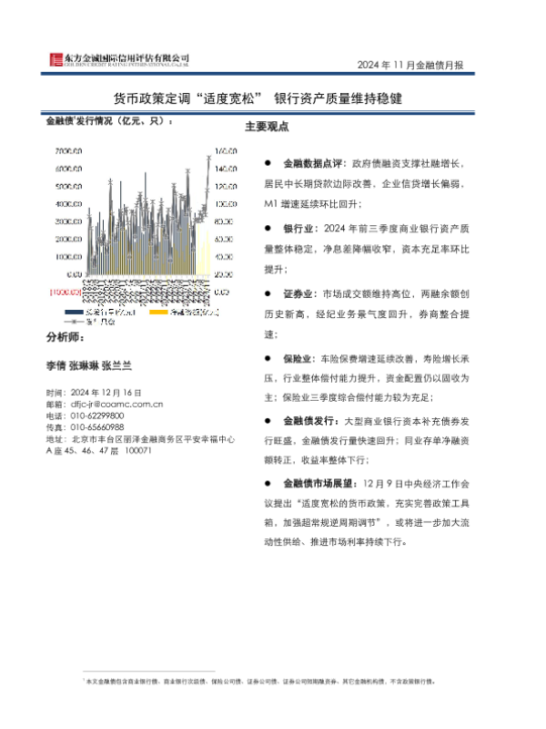 【东方金诚】【20241216】2024年11月金融债月报:货币政策定调“适度宽松”银行资产质量维持稳健-11页