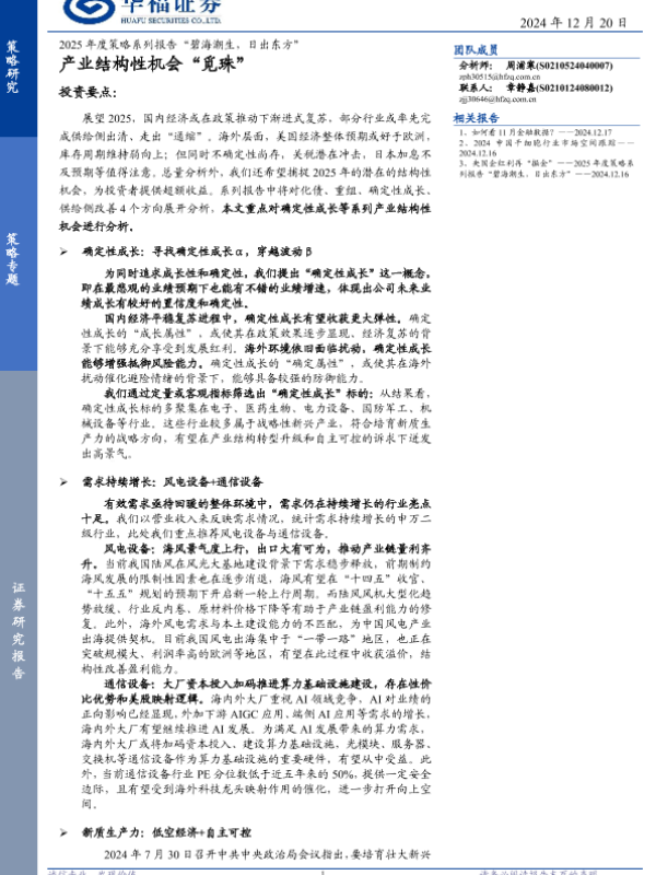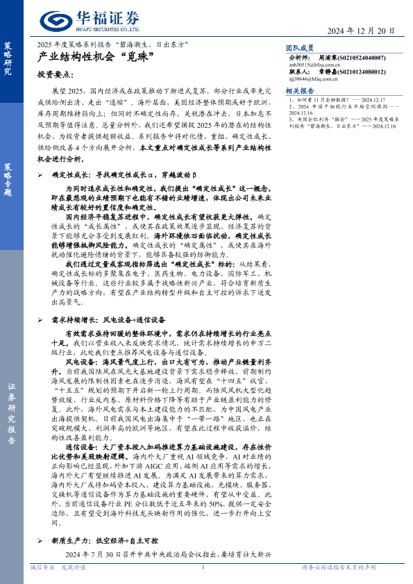 【华福证券】【20241220】2025年度策略系列报告“碧海潮生,日出东方”:产业结构性机会“觅珠”-31页