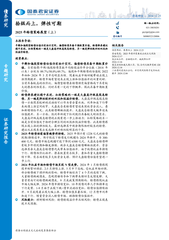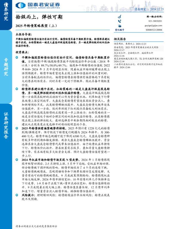 【国泰君安证券】【20241225】2025年转债策略展望(上):拾级而上,弹性可期-11页