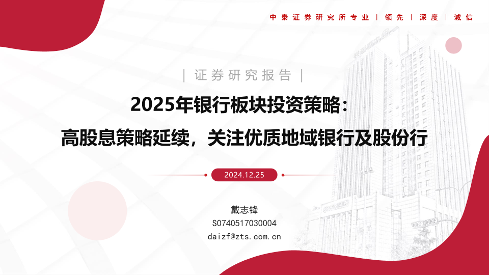 【中泰证券】【20241225】2025年银行业板块投资策略:高股息策略延续,关注优质地域银行及股份行-75页