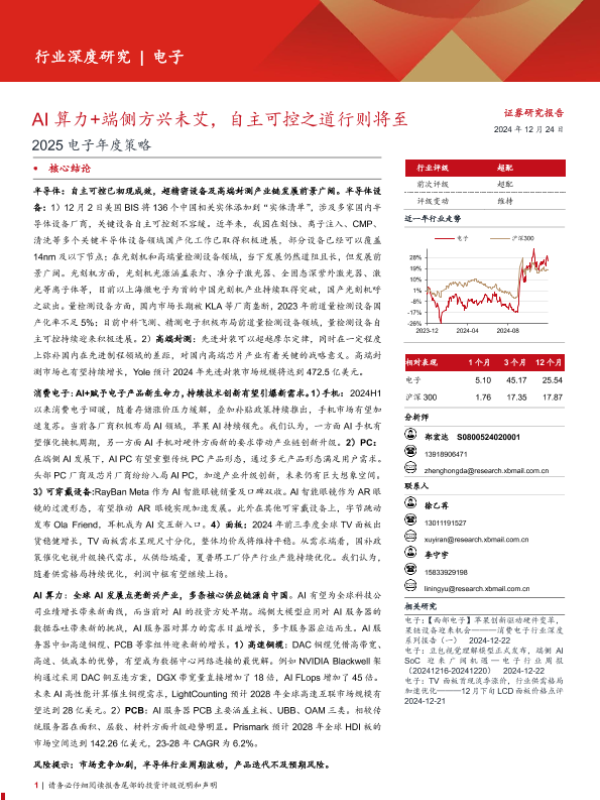 【西部证券】【20241224】2025电子行业年度策略:AI算力+端侧方兴未艾,自主可控之道行则将至-51页