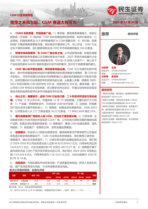 【民生证券】【20241226】CGM行业深度报告:青萍之末风乍起,CGM赛道大有可为-45页