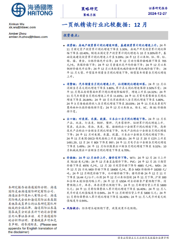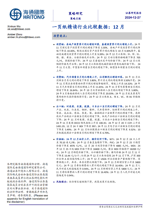 【海通国际】【20241227】一页纸精读行业比较数据:12月-10页