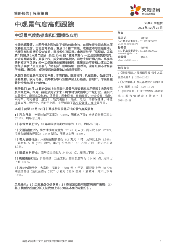 【天风证券】【20241223】中观景气度高频跟踪:中观景气度数据库和定量模型应用-17页