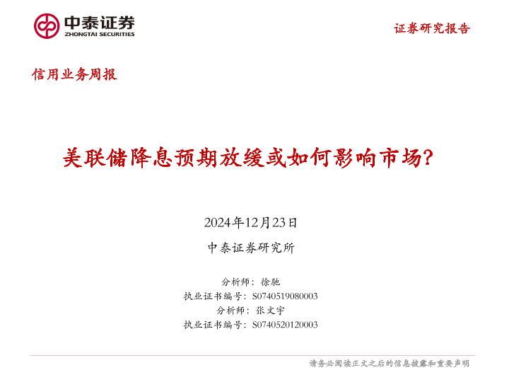 【中泰证券】【20241223】信用业务:美联储降息放缓或如何影响市场?-15页