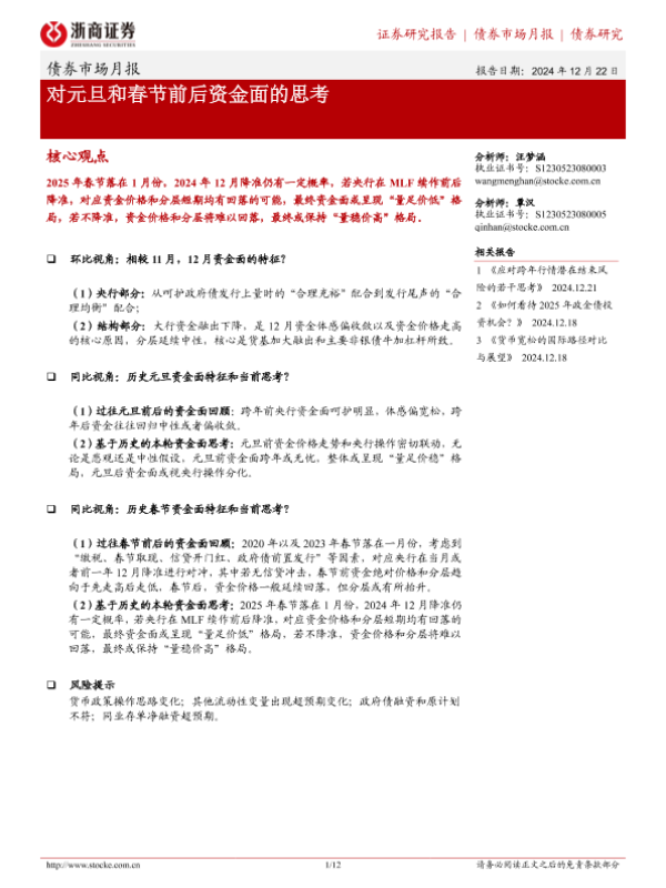 【浙商证券】【20241222】债券市场月报:对元旦和春节前后资金面的思考-12页