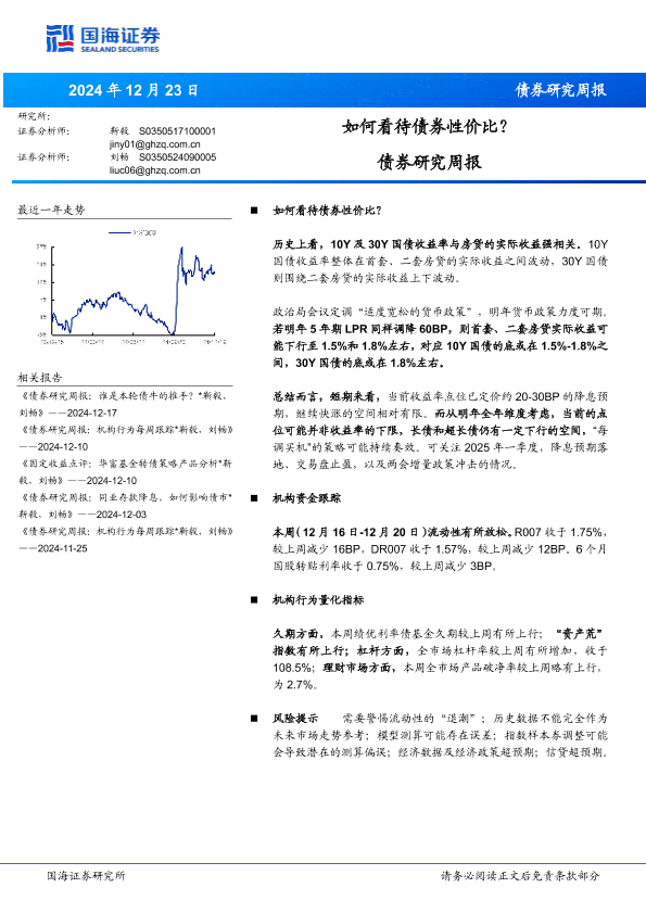 【国海证券】【20241223】债券研究周报:如何看待债券性价比?-20页