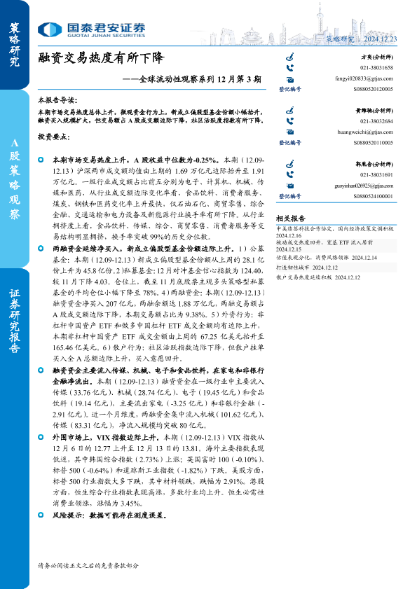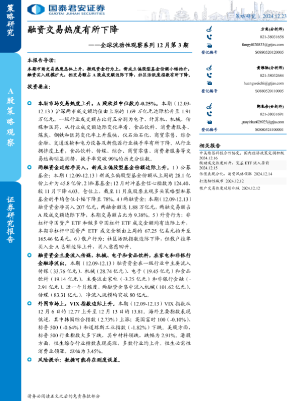 【国泰君安证券】【20241223】全球流动性观察系列12月第3期:融资交易热度有所下降-13页