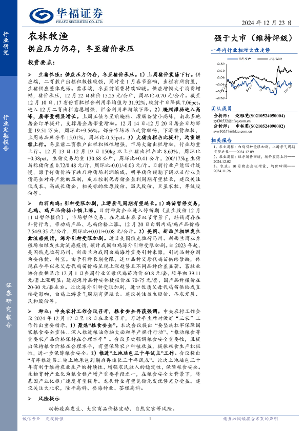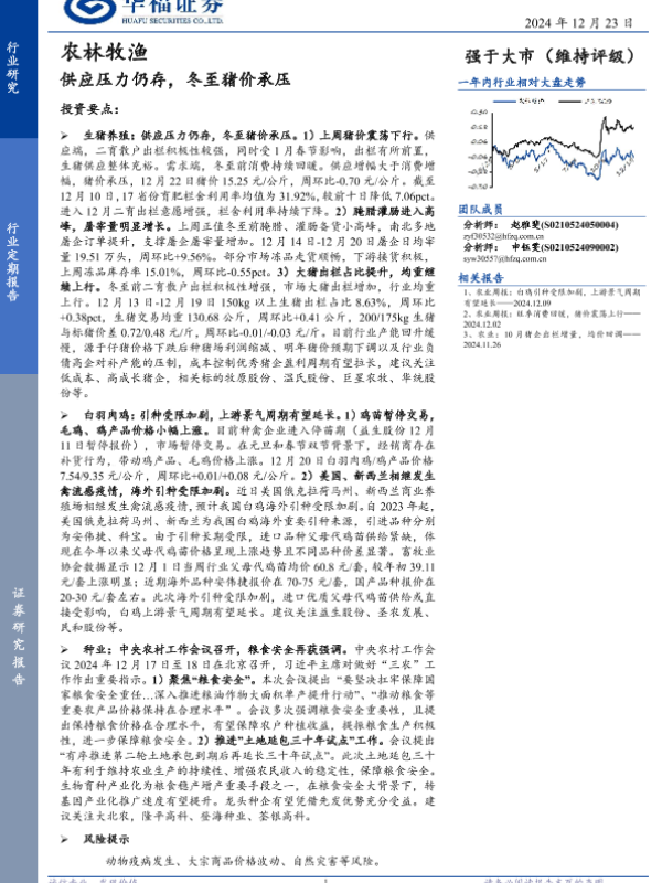 【华福证券】【20241223】农林牧渔行业定期报告:供应压力仍存,冬至猪价承压-13页
