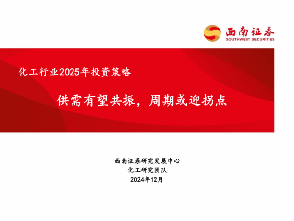 【西南证券】【202412】化工行业2025年投资策略:供需有望共振,周期或迎拐点-54页